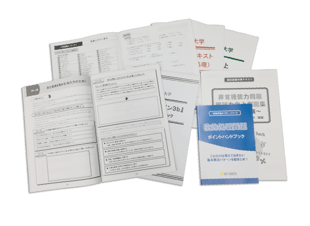 特に、当社オリジナルの「筆記試験対策講座(一般常識編/言語・非言語編)」は、一般的に販売されているような、個人利用を前提として教材費が1〜数万円程度もするようなものとは一線を画し、教育機関単位でご採択いただくことで、1名あたりの教材費の単価を大幅に抑えて提供しております。
